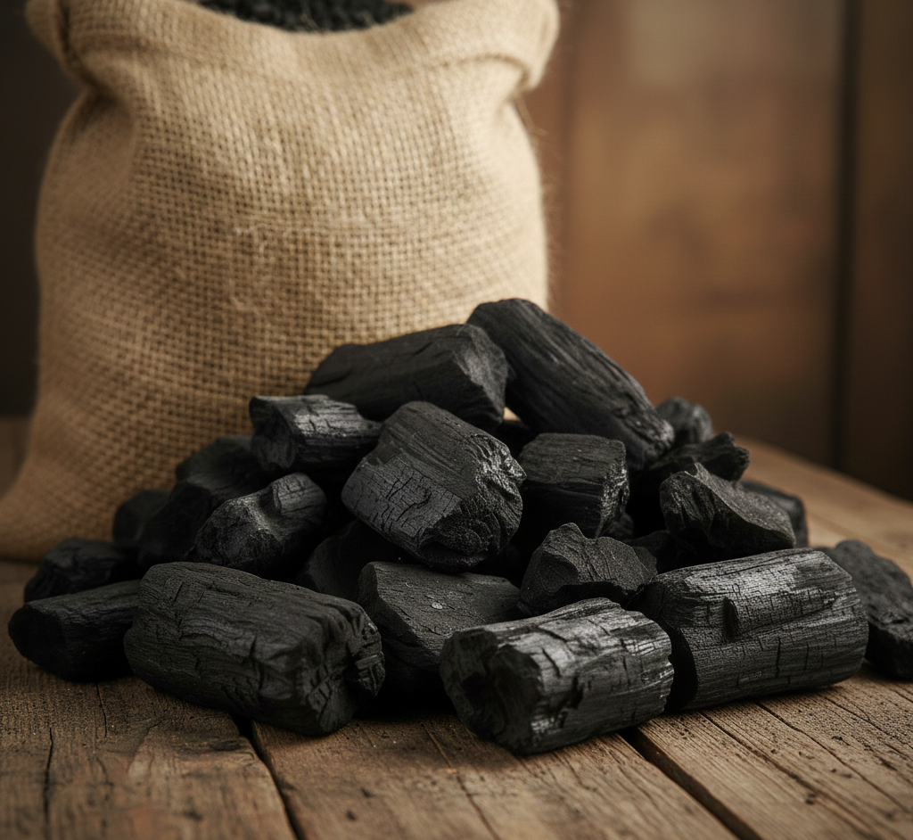 Sustainable coconut shell and hardwood charcoal for BBQ and industrial use.