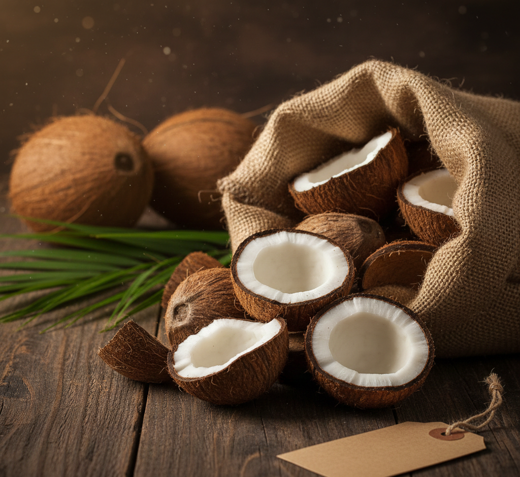 High-grade dried coconut meat for oil extraction and food manufacturing.